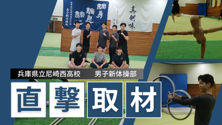 同じく県新人大会で団体・個人とも優勝した兵庫県立尼崎西高校男子新体操部にお邪魔しました。練習場はピリッとした空気で、ちょっと緊張…でも、目の前で息の合ったバク転や宙を舞う姿に、もう釘付け!