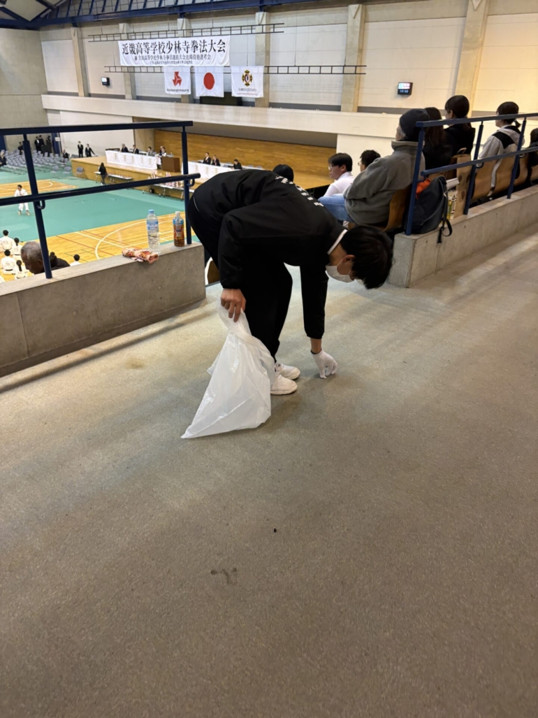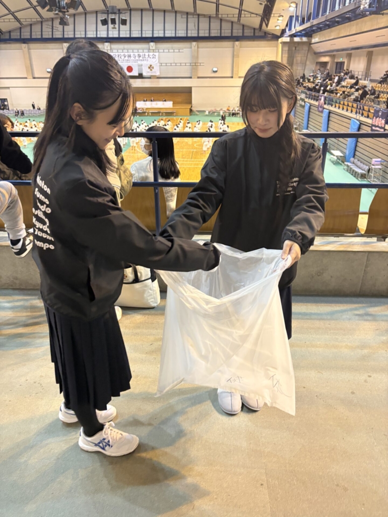 その後、会場内の清掃活動を行い、ポケットティッシュを配布し、インスタグラムのフォローについてもPRしました。
