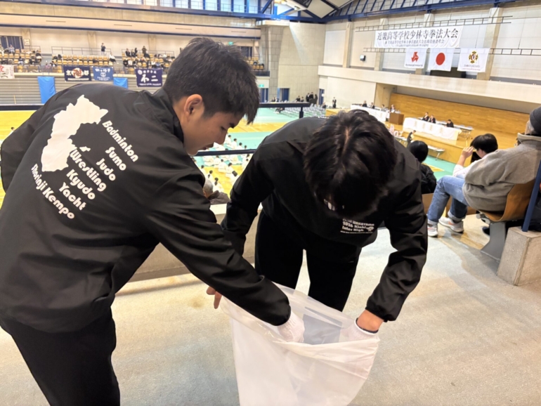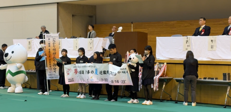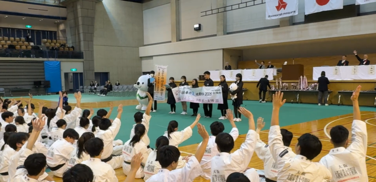 12月22日(月)県立橋本体育館で行われた、第43回近畿高等学校少林寺拳法大会にて広報活動を行いました。来年度インターハイの競技会場となる県立橋本体育館で近畿2府4県の選手約240名に対し、和歌山県に関するクイズと演武を終えた選手にインタビューを行い、会場はとても盛り上がりました。