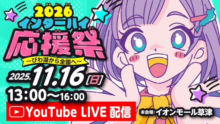 11/16(日)イオンモール草津にて開催するインターハイカウントダウンイベント「2026インターハイ応援祭~びわ湖から全国へ~」では、イベント当日の様子をYoutubeでLIVE配信します!