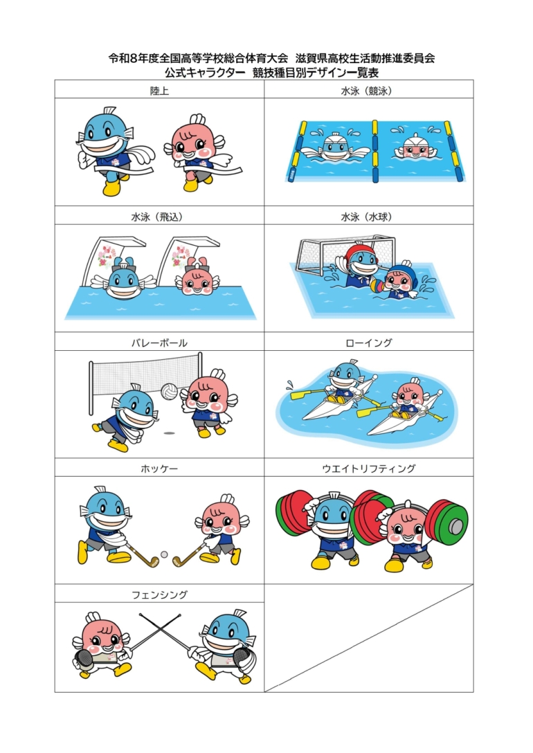 滋賀県高校生活動推進委員会公式キャラクター競技種目別デザイン