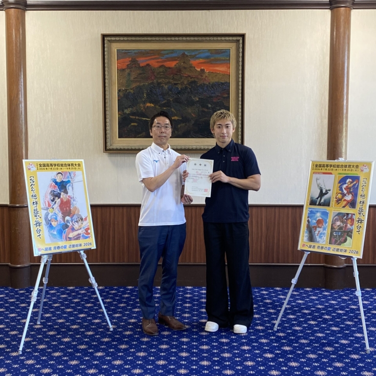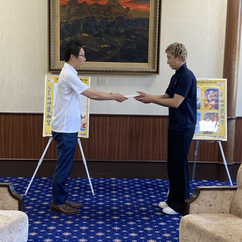 就任式の後には、水野教育長とインターハイやスポーツについて語り合う場面もあり、今後も様々な形で連携を考えています(^^)/